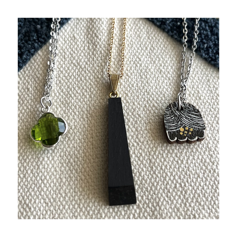Ebony, whose wood was used by Atelier Diospyros in this pendant, represents resistance and protection as we move forward on our journey. Like all their pieces, this pendant is made from leftovers and transformed into precious wood, making us participants in the respectful process of upcycling.